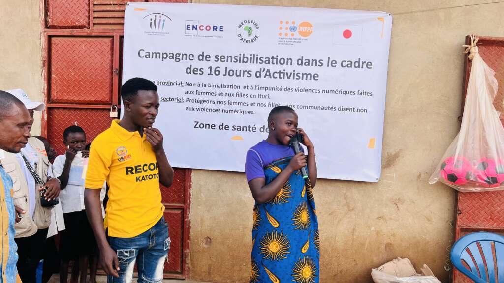 Dans le cadre de la campagne internationale des 16 jours d’activisme contre les violences basées sur le genre (VBG), les organisations ENCORE et Médecins d’Afrique (MDA), en collaboration avec le Sous-Cluster VBG et avec le soutien financier de UNFPA/JAPON, ont organisé une grande séance de sensibilisation de masse au centre de Katoto, dans la Zone de Santé de Lita.